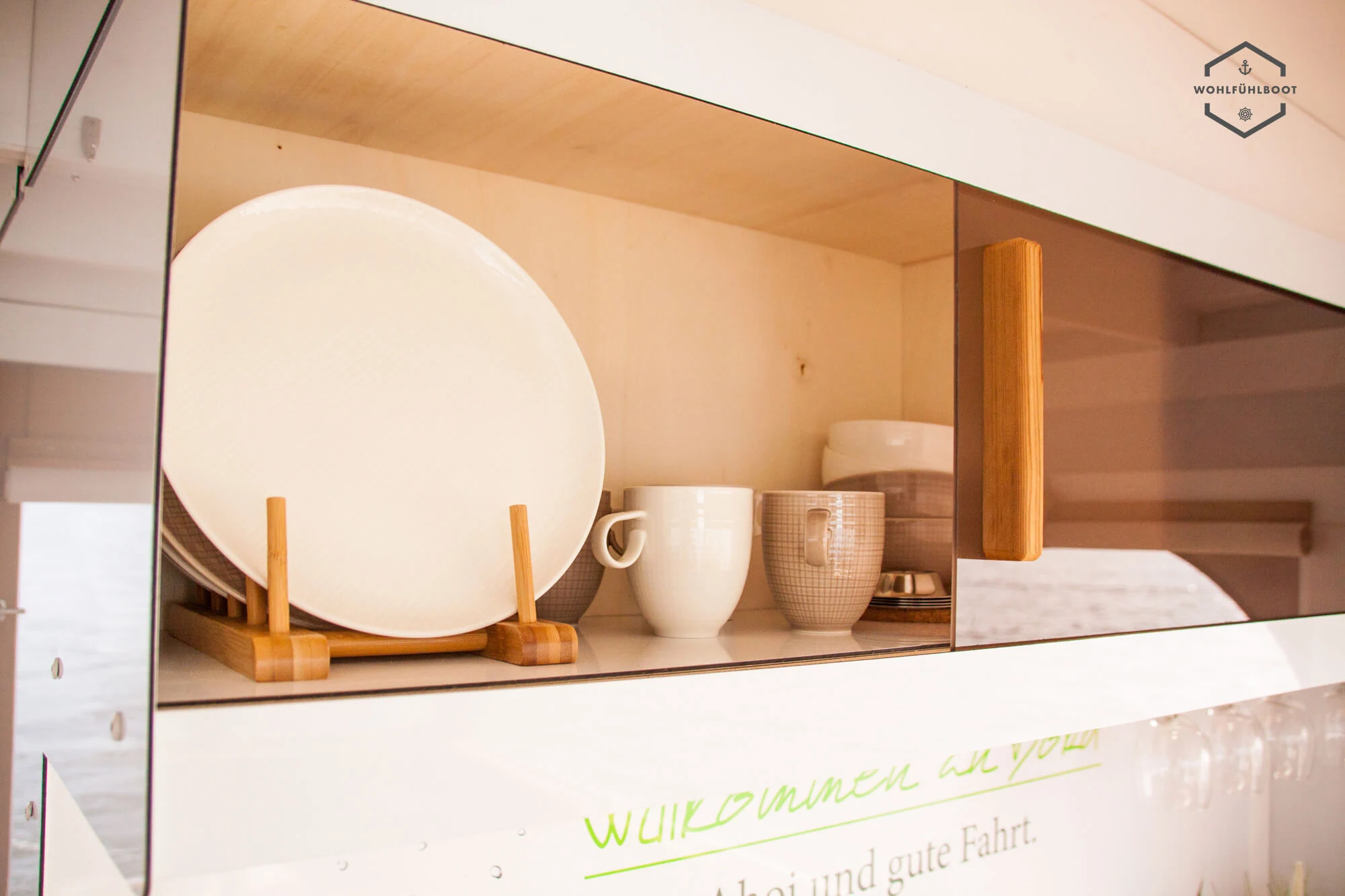 Unsere stilvollen Wohlfühlboote sind mit 4 gepolsterten Schlafplätzen, Küche, fließendem Wasser, Kühlschrank, Heizung, Solarzellen, Bad und Toilette mit Wasserspülung ausgestattet.